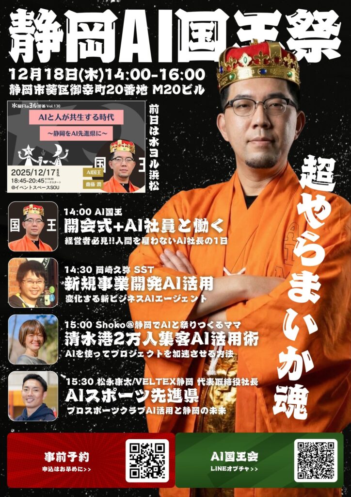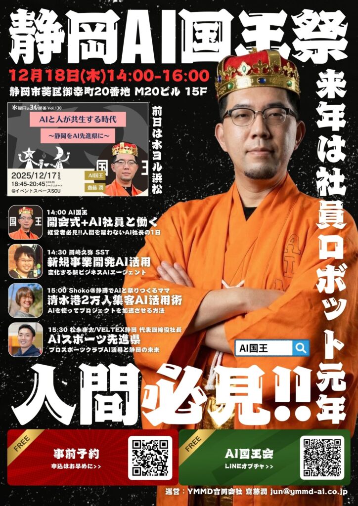 今回は静岡駅前のM20ビルで開催させて頂けることとなりました。最近のAI進化が激しすぎるのでぜひお誘い合わせの上ご参加頂けますと幸いです。来年はAI国民もリアルで連れてゆきたい気持ちです。