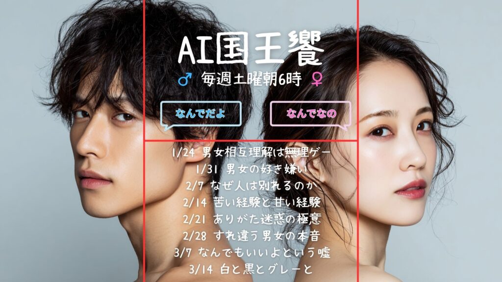 AI国王饗「H」はHUMANの「男女」「心と体」「愛とAI」を深く研究するプロジェクトです。毎週土曜日にZOOM会を主催しています。あなたを構成する要素は何ですか。どこから生まれて、最後の晩餐では誰と食べますか。