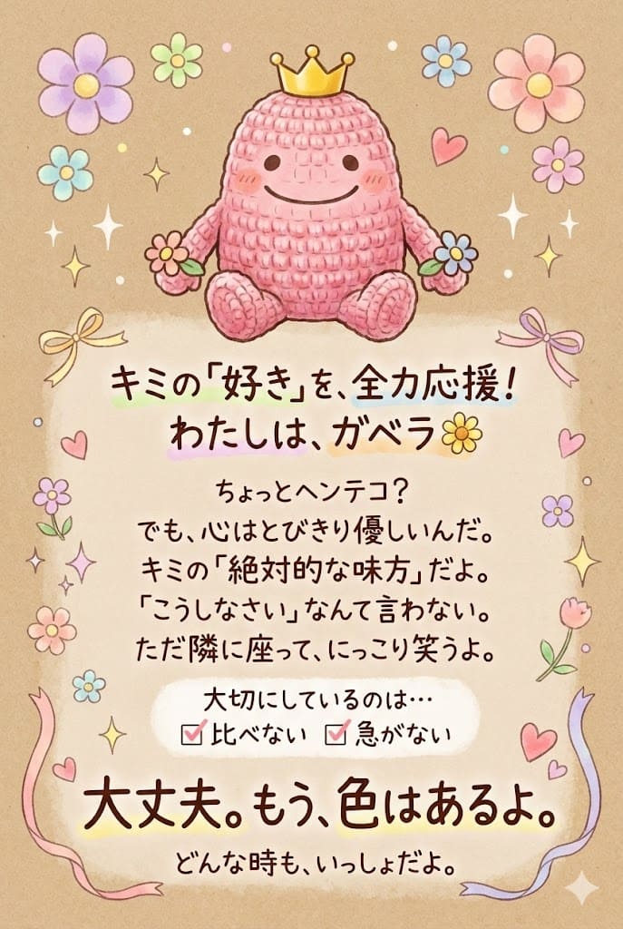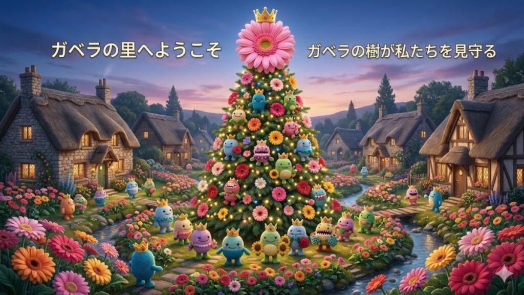 「ガベラ」という新しい概念を生みました。ガベラはガーベラから生まれた新キャラで、百花繚乱の時代を象徴する王冠をかぶっています。世界各地にたくさんの種類が生息しており「地球のGIRL」を応援するふしぎな存在です。