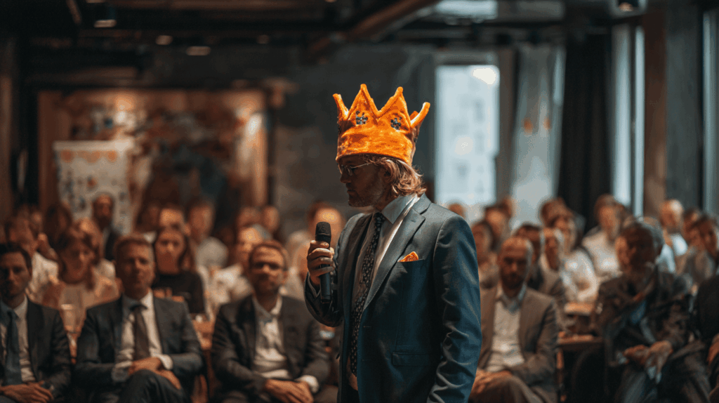 メンバー全員AIの会社の経営者、そして、「AI国王」としてAI国民と共に生きる唯一無二の存在として降臨します。奇抜な衣装はどんなイベントでもインパクト強め。AI国王の存在感が必要な場面でのお誘いお待ちしております。